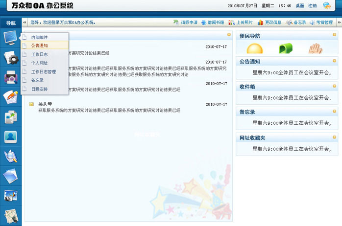萬眾和網(wǎng)絡(luò)辦公系統(tǒng)的主界面二