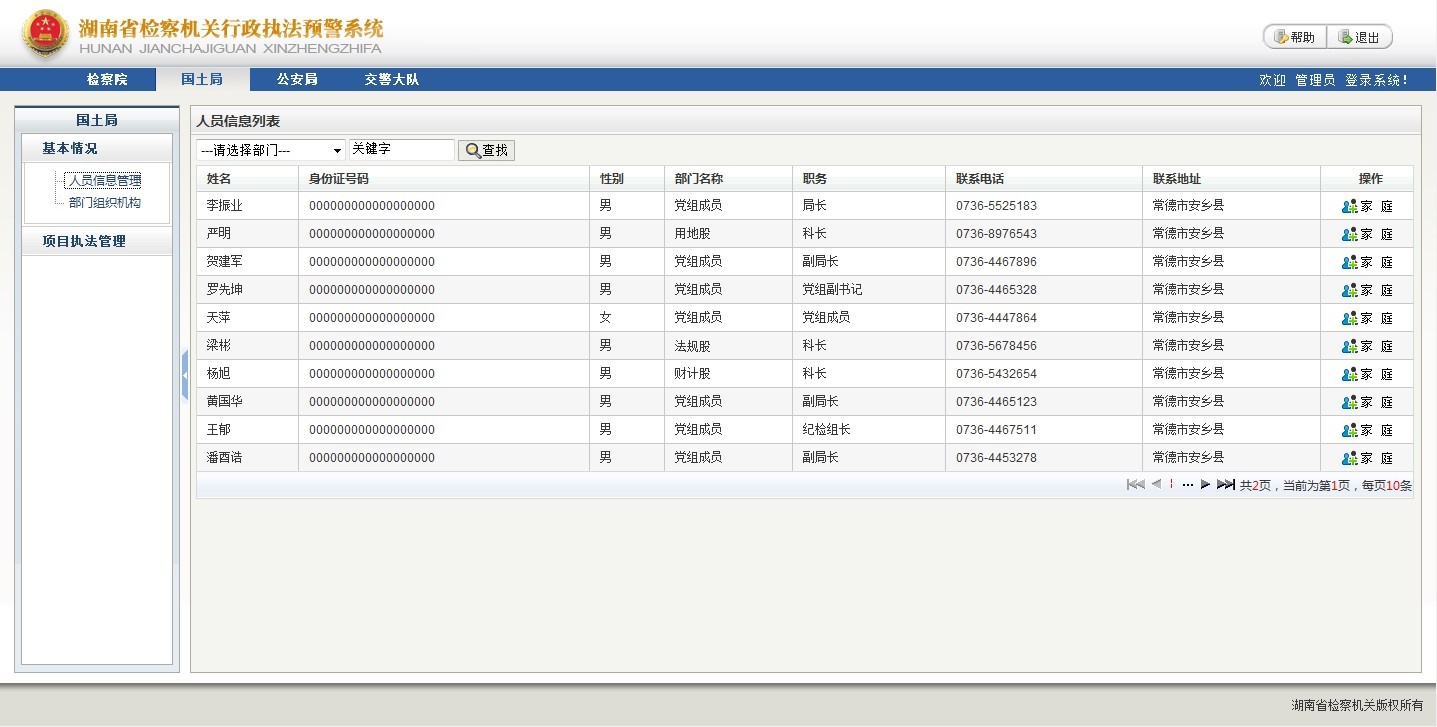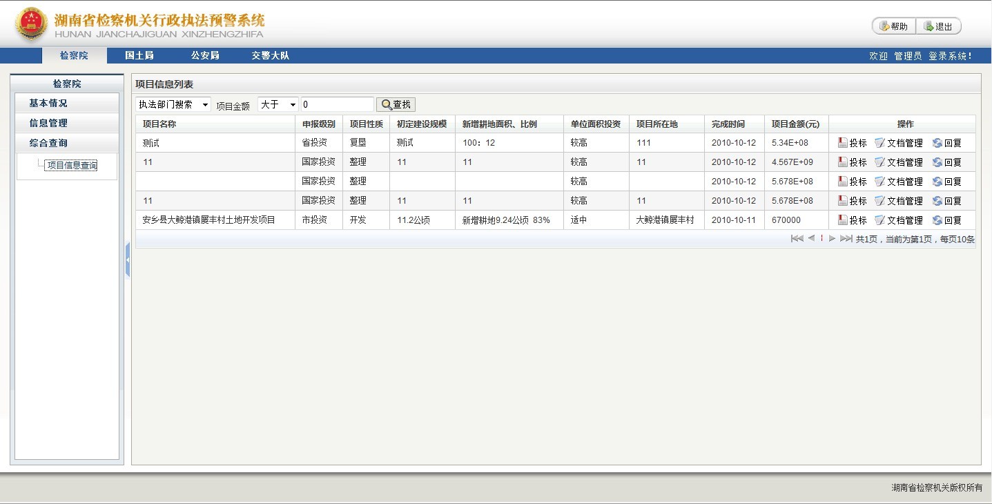 根據(jù)不同條件查詢執(zhí)法部門的項目信息及與執(zhí)法部門的信息交流等功能。