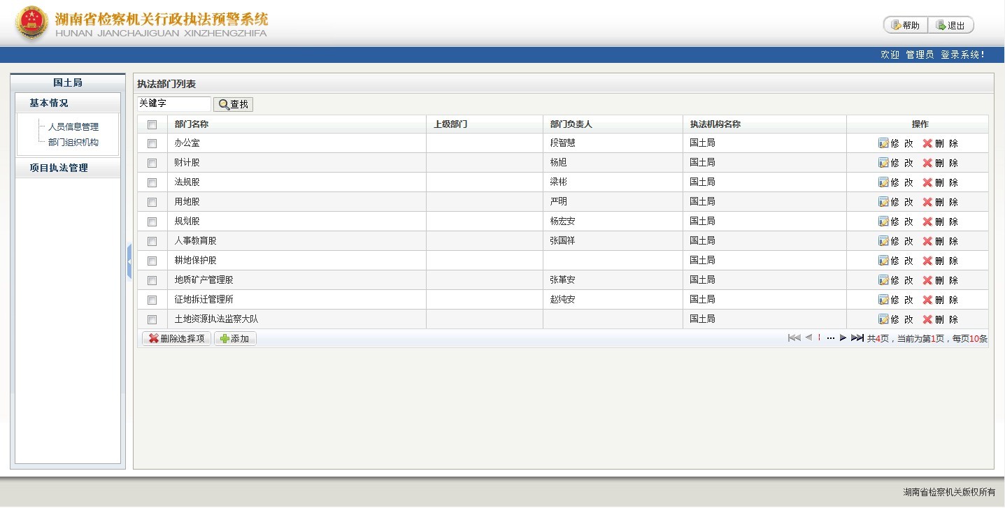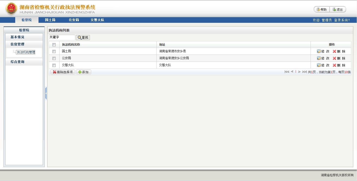 對執(zhí)法機構(gòu)信息增刪改基本的維護功能。